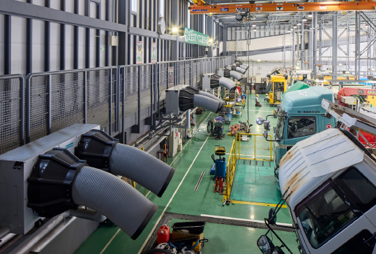 高品質なサービスをスピーディーに提供するため、工場の増設・再設備を進行中です。鹿児島南工場や都城工場をはじめ、各支店に最新の空調設備を導入し、快適な作業空間を広げています。